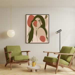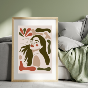 Transform your home decor with this stunning digital print that combines a unique boho style with earthy green and terracotta hues. This piece is perfect for adding a touch of sophistication and warmth to any room.