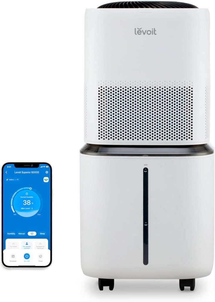 The LEVOIT Evaporative Humidifier is perfect for large spaces, covering up to 3000ft² with its 22.7L capacity and 72-hour runtime. It features smart control, a top-fill design, and is foldable with wheels for easy mobility. Ideal for maintaining comfortable humidity levels, it includes dry mode and a quiet sleep mode, making it a great choice for any home.