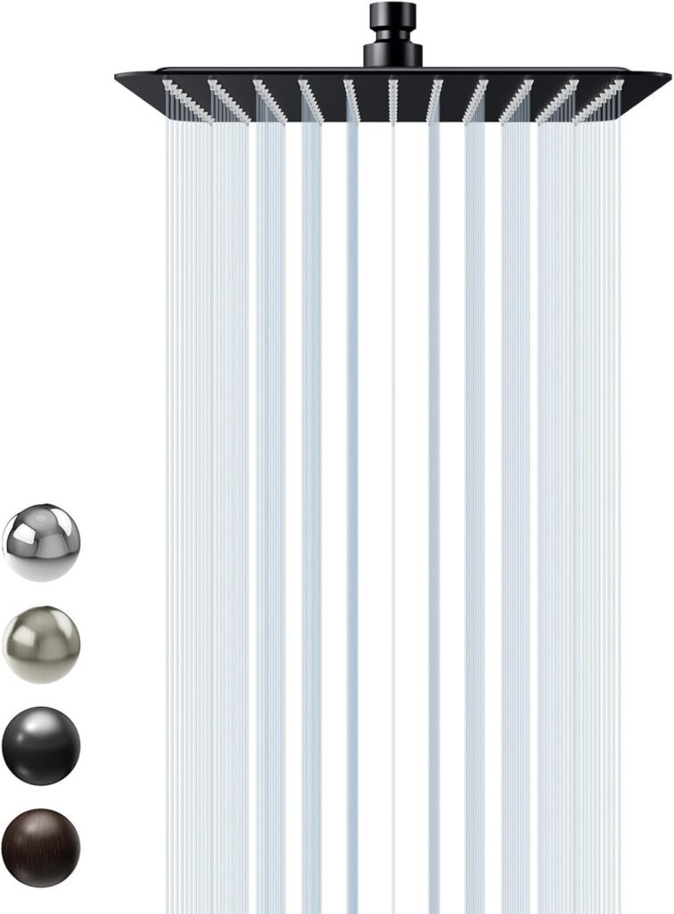 SR SUN RISE Luxury 10 Inch Large Square 304 Stainless Steel Shower Head High Pressure Rainfall Showerhead Ultra Thin Water Saving, Matte Black