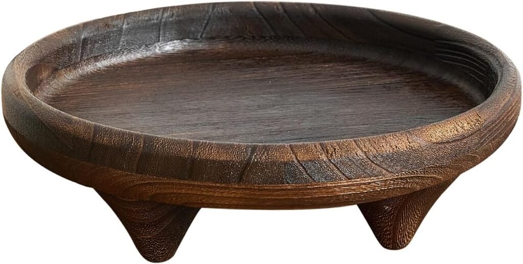 Wabi Sabi Decor Round Wood Footed Serving Tray (Brown)