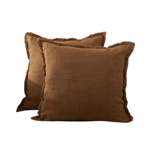 Linen Decorative Throw Pillow Cover 20» x 20» Fringed Throw Pillow Cover Pillow Cases Accent Pillows for Bed Brown Pillow Cover